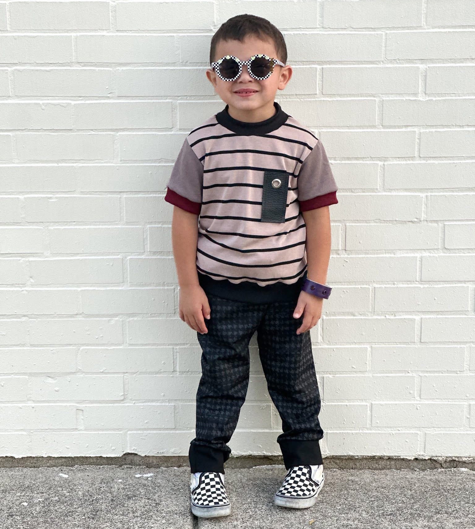 ThIS MR.O Shirt features a combination of stripe print and the fall burgundy tones we love. The vinyl pocket accent detail offers a bold unique look. Made from a cotton and polyester blend fabric, this shirt delivers comfort without sacrificing style. Its soft texture ensures all-day wearability, making it a versatile addition to any wardrobe.
