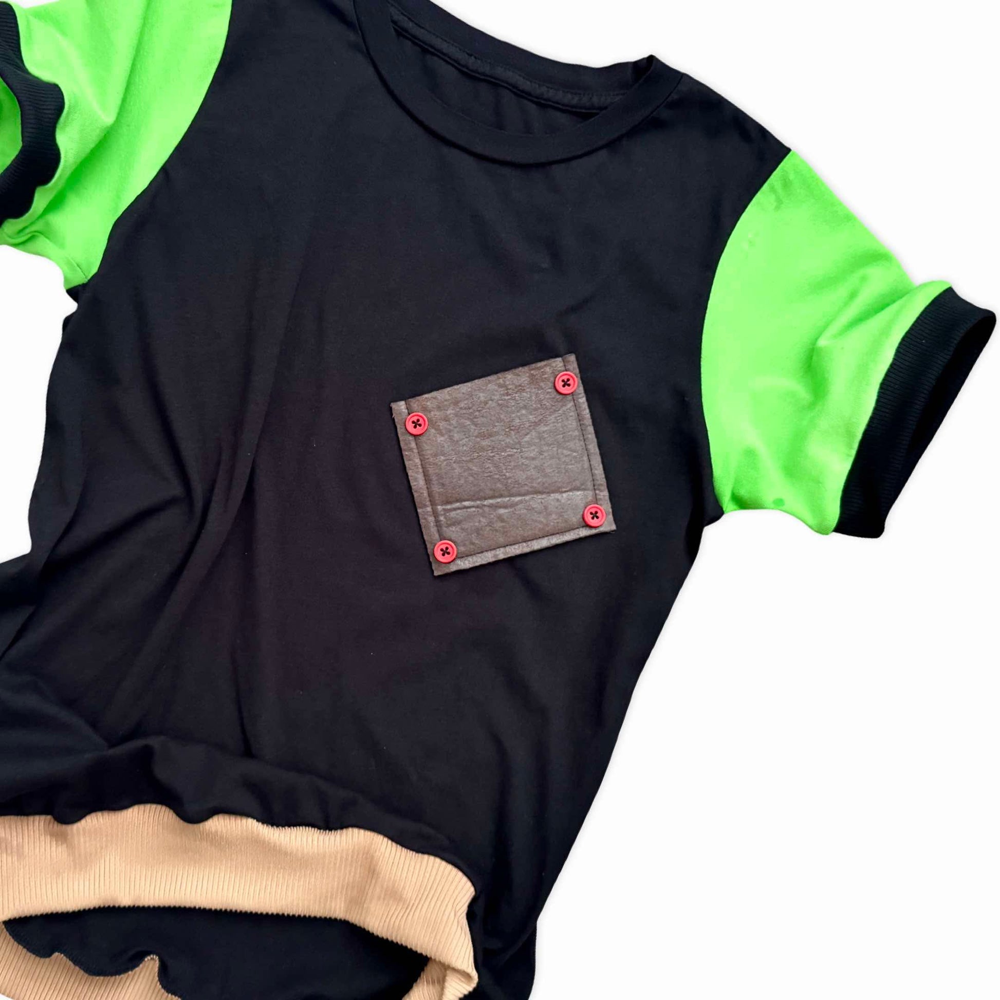 The MR.O Creep It Real Shirt features a combination of bright neon sleeves in a black tee. The vinyl pocket accent detail offers a bold unique look. Made from a cotton and polyester blend fabric, this shirt delivers comfort without sacrificing style. Its soft texture ensures all-day wearability, making it a versatile addition to any wardrobe.